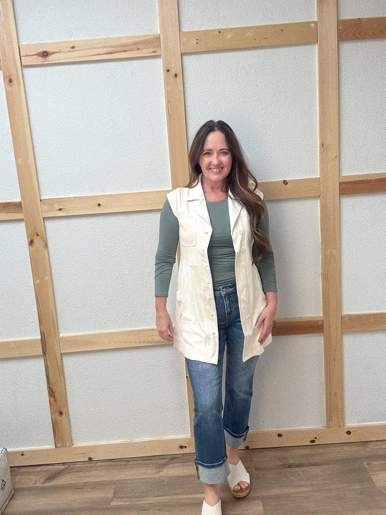Mica denim Mid Rise Straight Leg with Cuffed Hem. 93.5% Cotton 5% Polyester 1.5% Spandex