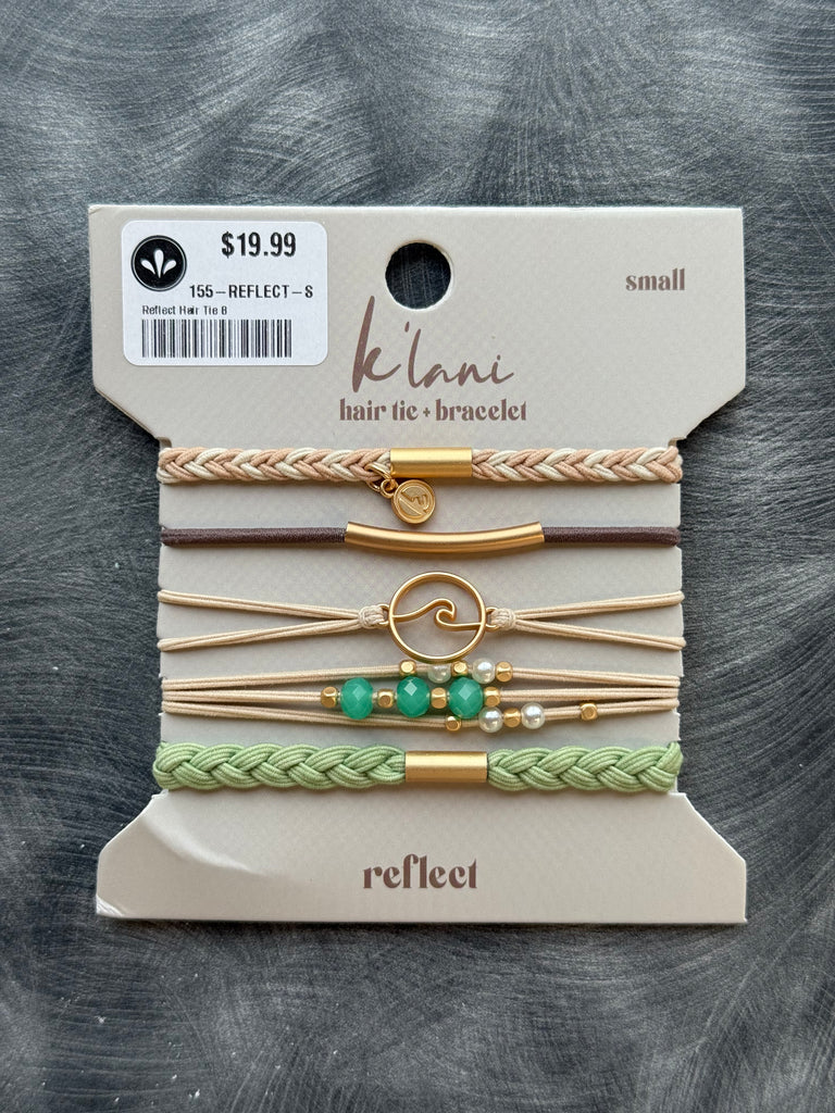 Don't ever be without a hair tie again! We are in LOVE with these hair tie sets that look like bracelets! Looks stylish, but oh so functional... each one is a hair tie. Medium is like a normal hair tie width and fits wrists that are 5-6.4". Small fits wrists that are smaller than 5". Large fits 6.5"-7.5" wrists.