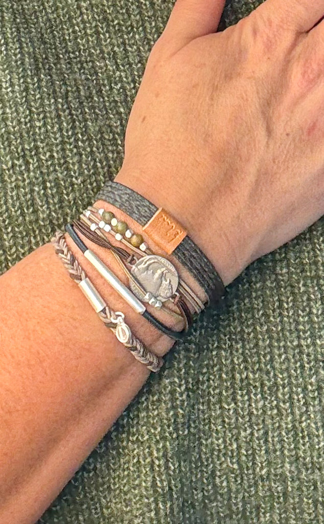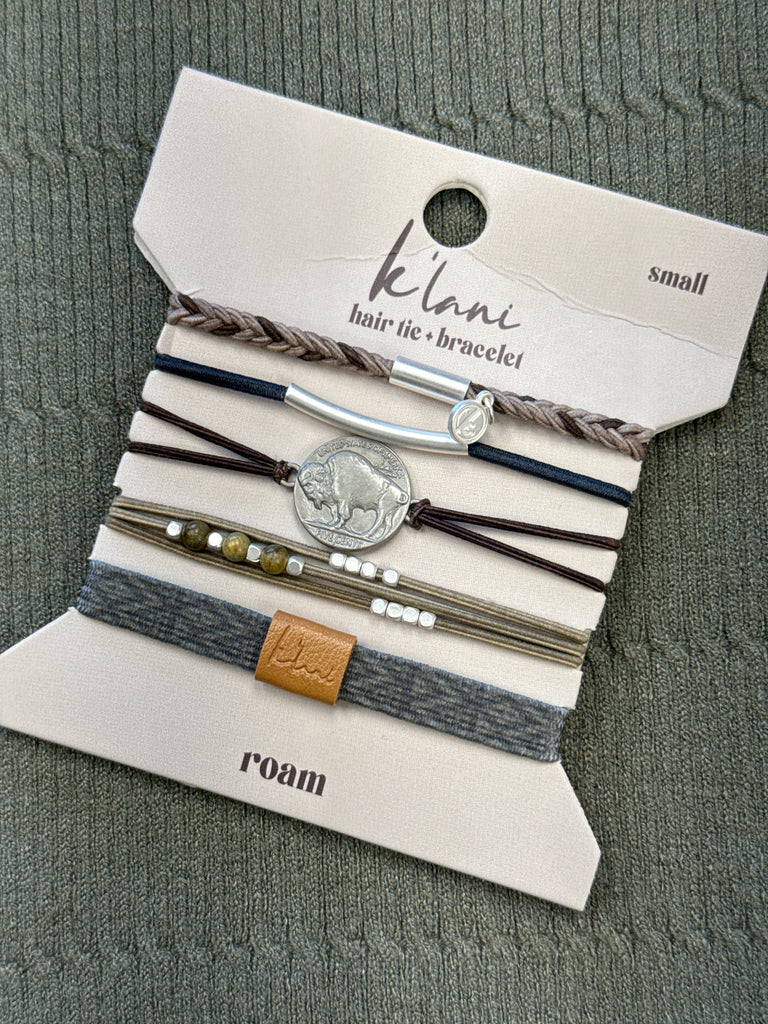 Don't ever be without a hair tie again! We are in LOVE with these hair tie sets that look like bracelets! Looks stylish, but oh so functional... each one is a hair tie. Medium is like a normal hair tie width and fits wrists that are 5-6.4". Small fits wrists that are smaller than 5". Large fits 6.5"-7.5" wrists.