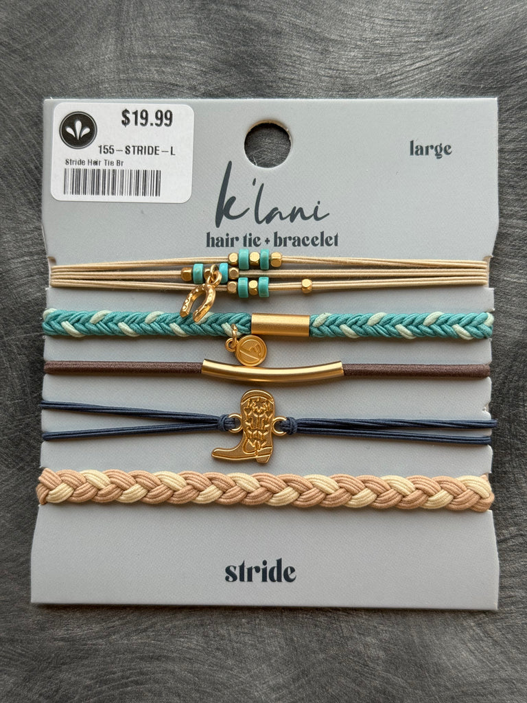 These 5 hair tie bracelets are the perfect accessory made to coordinate together on your wrist and any one of them works as a hair tie for your hair! Medium is the size of a normal hair tie band. It fits wrists between 5-6.4" around. Small is better for younger girls & small teens. It fits wrists under 5" around. Large is sized for wrists 6.5-7.5"